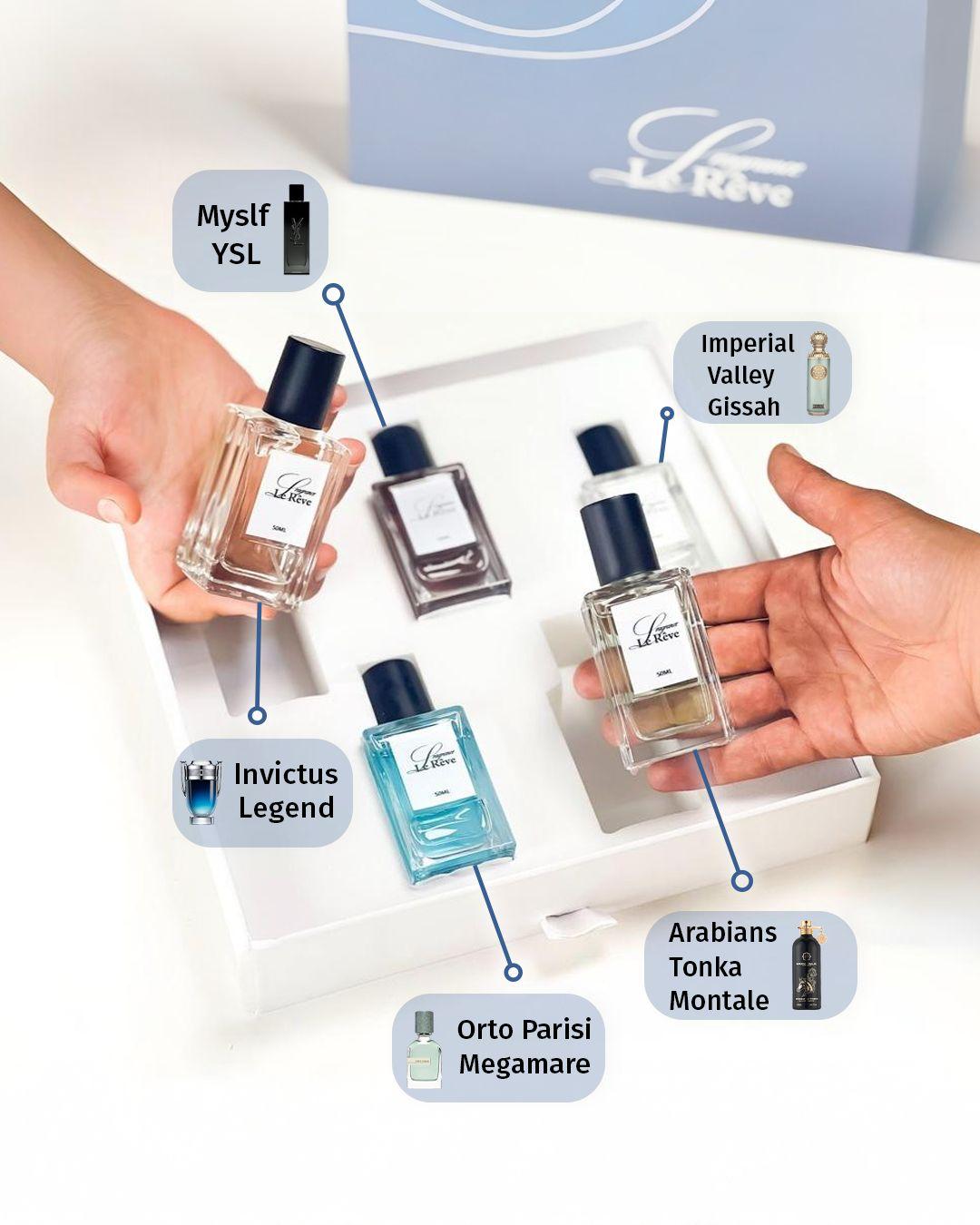 خمس عطور داخل كل باكج , بروائح مختارة بعناية صمّمت لتكون هديتك القادمة أو توقيعك اليومي الخاص