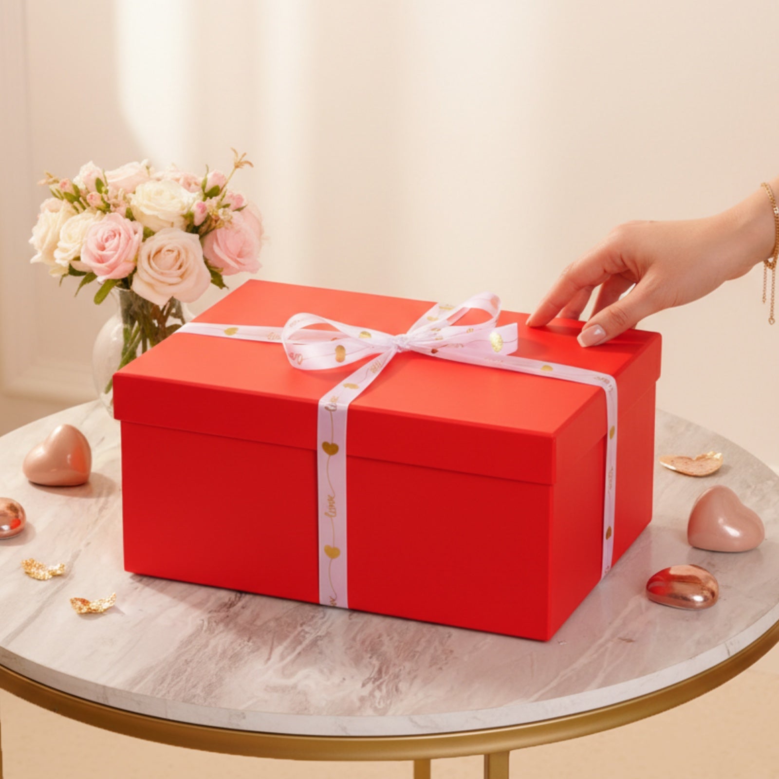 🌹 باقة ورود مرتّبة بأناقة داخل صندوق هدايا فاخر